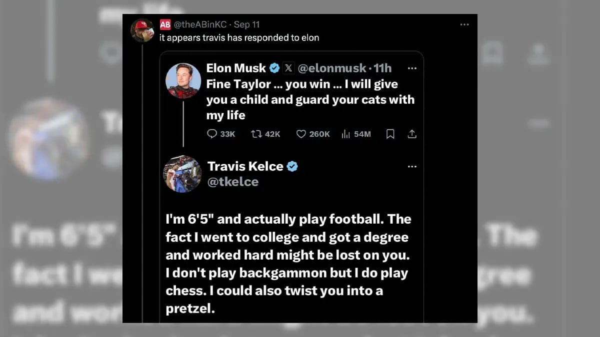Online users shared a purported screenshot of an X post, claiming it was Kelce aggressively replying to Musk's remark about Taylor Swift.