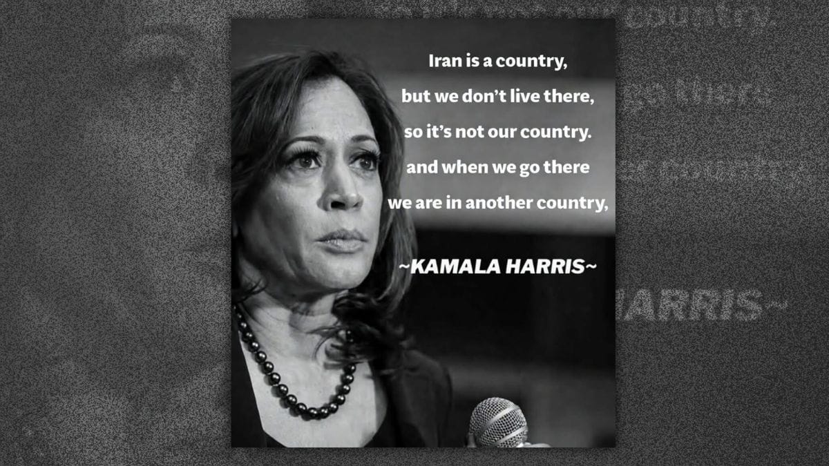 Did Kamala Harris say, 'Iran is a country, but we don't live there, so it's not our country'?