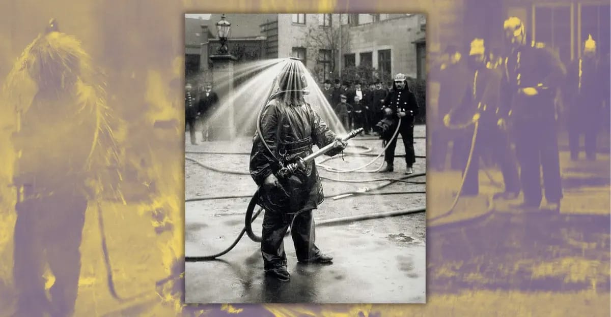 German firefighters once thought sprinkler helmets were a good idea