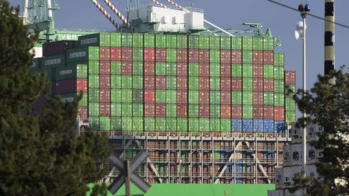 A photo appeared to show a ship in Tacoma's port loaded with red and green containers spelling "renee."