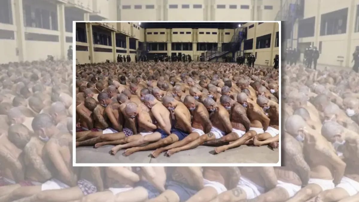 Real photo shows tied-up, stripped men in Salvadoran prison — just not the one receiving US deportees in 2025